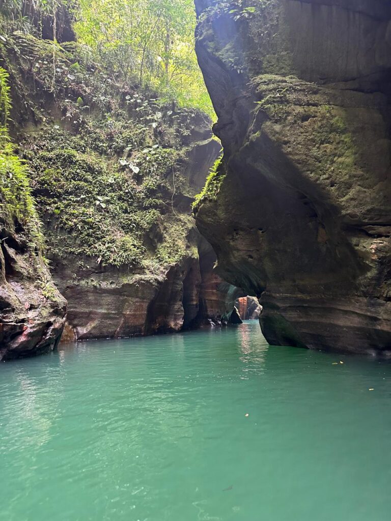 Wari Chora is the land of the Seven Giant Serpents. Wari is a Garo word that translates to deep water while Chora refers to long. It is a place surroundedby canyons and the tranquil turquoise water of river Rongdik passes through it.