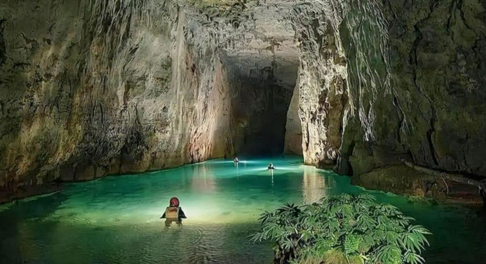 It is a magnificent river cave which would require over 3.5 km of swimming over a series of very large and deep lakes, formed by the existence of more than 50 natural dams or gours, 6 to 8 m high. The cave has a very large colony of bats and possibly cave-adapted fish.
