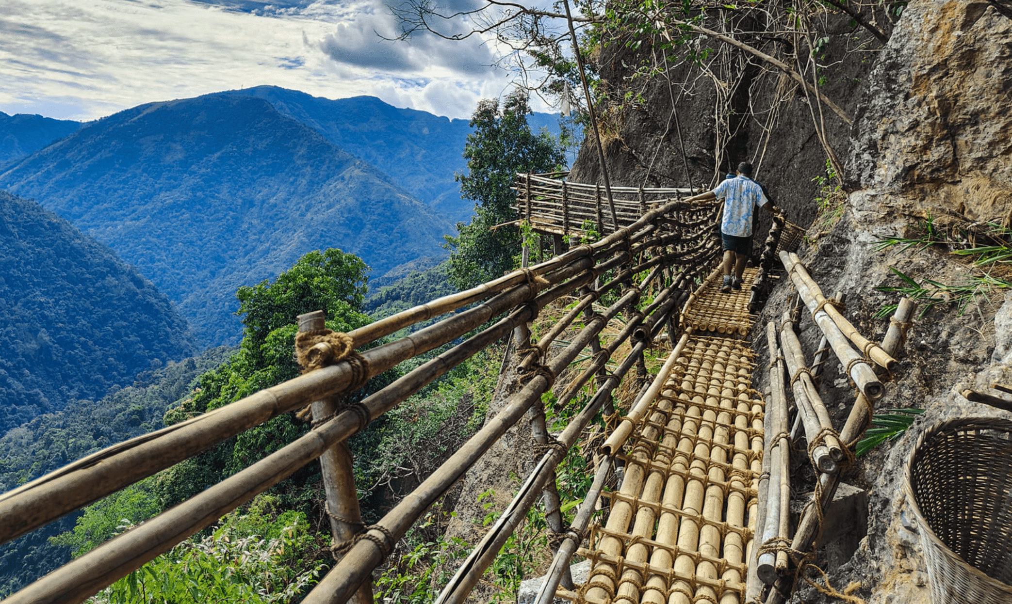 The Mawryngkhang Trek, often called the Bamboo Trail, begins at Wahkhen village in East Khasi Hills, Meghalaya—about 48–50 km from Shillong , It is Built entirely by local Khasi villagers using bamboo and cane